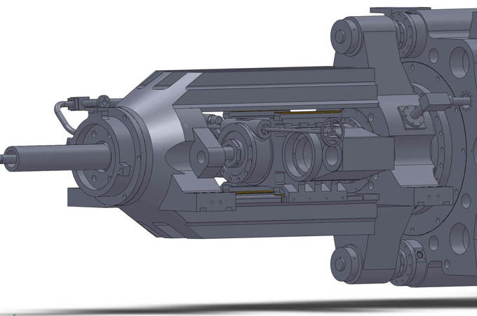 5)整個(gè)機(jī)構(gòu)為整體式結(jié)構(gòu),結(jié)構(gòu)緊湊更容易實(shí)現(xiàn)雙動(dòng)擠壓機(jī)穿孔系統(tǒng)要求的同心度,加工制作相對(duì)容易。